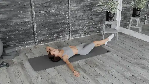 매트에 엎드려 플랭크 자세를 만듭니다. 왼쪽 다리를 바깥쪽으로 들어 올리며 당깁니다. 원래 위치로 되돌립니다. 오른쪽 다리도 같은 방식으로 바깥쪽으로 당겼다가 되돌립니다. 왼쪽과 오른쪽 다리를 번갈아 가며 반복합니다.